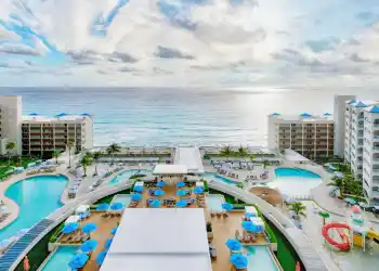 At the 4-star Hilton Cancun Mar Caribe All-Inclusive Resort, you'll enjoy a blissful retreat right on the white sand shores of Cancun's famous resort zone. Enjoy amazing resort amenities including a luxury spa, pristine pools, beach access, world-class dining, nightly entertainment, and more for the ultimate all-inclusive experience.